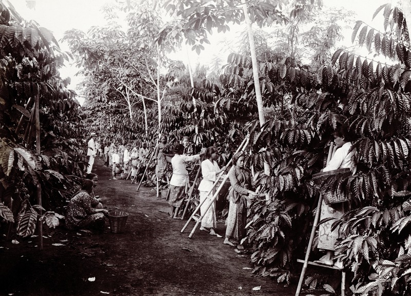Women picking at a coffee plantation, probably in Java - circa 1915