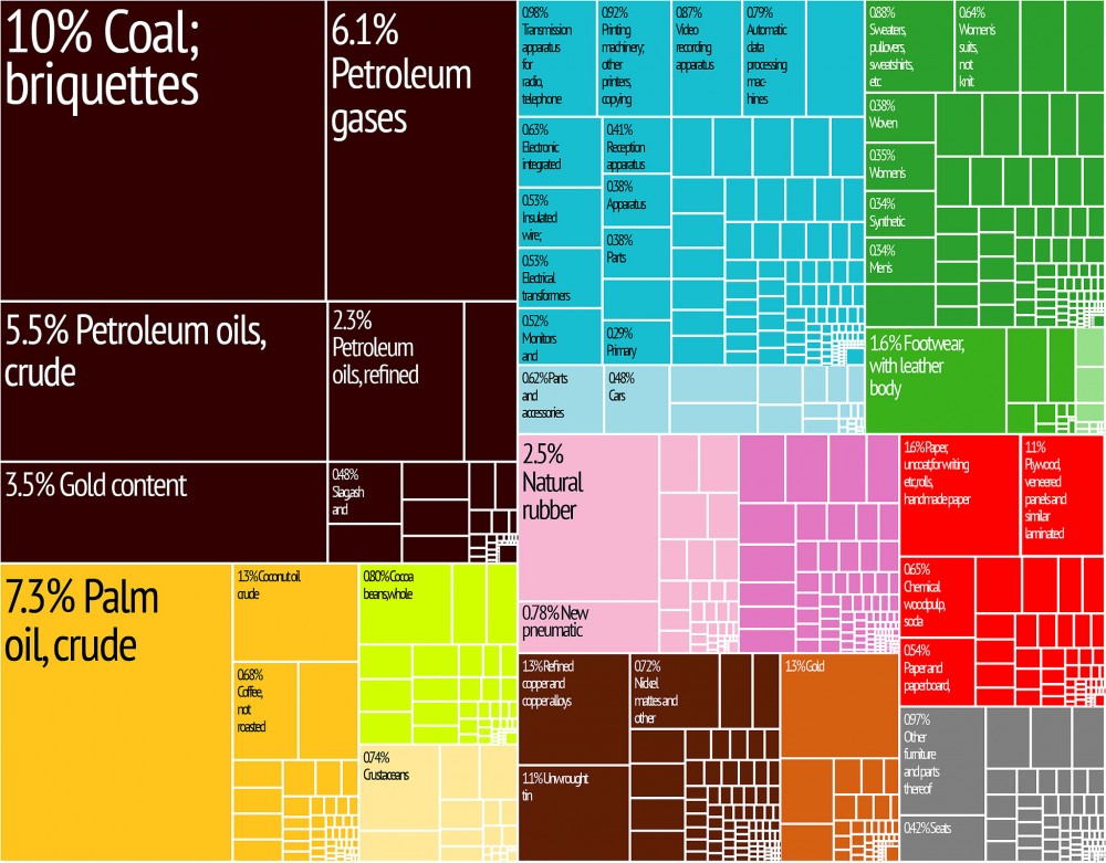 As you can see, Indonesia counts with abundant natural resources like oil and natural gas, tin, copper and gold as well as agricultural products including rice, palm oil, tea, coffee, cacao, medicinal plants, spices and rubber.