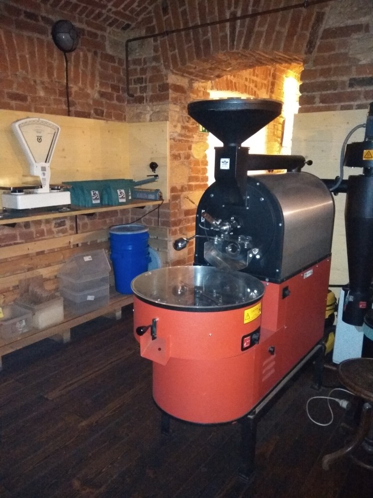 S postupujícím večerem přecházím z kávy na pivo, to se mimochodem nepravidelně mění, vždy je ale z malého poctivě vařícího pivovaru (na kvalitu sortimentu se tu obecně hodně dbá), a protože se Pražírna postupně vyprazdňuje, mám příležitost dál vyzvídat. Třeba kdy bych se mohl zastavit, abych viděl pražící stroj, který je dominantou zadní poloviny kavárny, v akci. A jsem nemile překvapen – stroj už není v provozu. Ne snad vinou poruchy, ale z moci úřední. Po návštěvě hygieny úředníci Pražírně zakázali pražit kávu v době, kdy je podnik otevřený pro hosty. A protože poptávka po kávě z Pražírny postupně narostla, druhou pražičku umístili do domku za Prahou a z této je už jen působivá dekorace. Ptám se také na cupping, ale ten v poslední době v Pražírně nedělají.