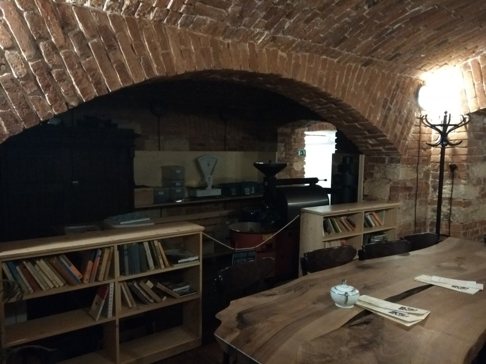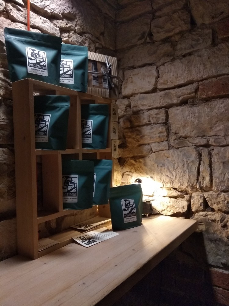Nenecháte-li se jako já zmást prvním pohledem, už ve dveřích poznáte, že jste neprohloupili. Přivítá vás nezaměnitelná a velmi intenzivní vůně kávy. Ta se totiž mele a připravuje za barem hned vedle vchodu. Také první pohled do Pražírny klame, vidět je několik schůdků a jen malá část velmi členitého prostoru, ve kterém se kavárna rozprostírá. Ten se mi mimochodem svou kombinací cihel a dřeva velmi zamlouvá, byť je v suterénu, a tedy bez oken. A přestože se do Pražírny pohodlně vejde odhadem nejméně padesát hostů, musel jsem se tentokrát i se svým doprovodem usadit u baru. A tak jsem měl alespoň možnost vyptávat se obsluhy, a protože jsem měl zrovna štěstí, také majitelky podniku.