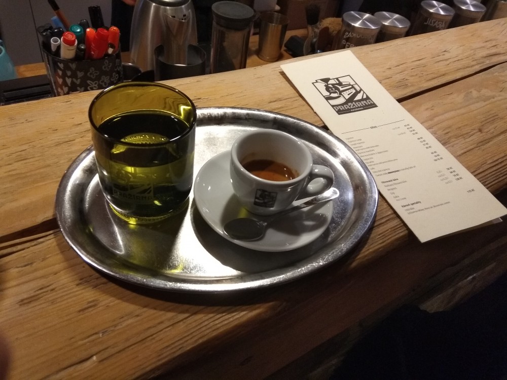 I když je Pražírna docela na ráně, jen několik desítek kroků od důležitého uzlu pražské hromadné dopravy, stanice I. P. Pavlova, dlouho jsem se neodhodlal do ní zajít. Snad právě proto, že je na takhle frekventovaném místě, a že zvenku působí poměrně nenápadně. A její logo navíc první pohled připomíná parní lokomotivu, byť jde samozřejmě o stroj na pražení kávy.
