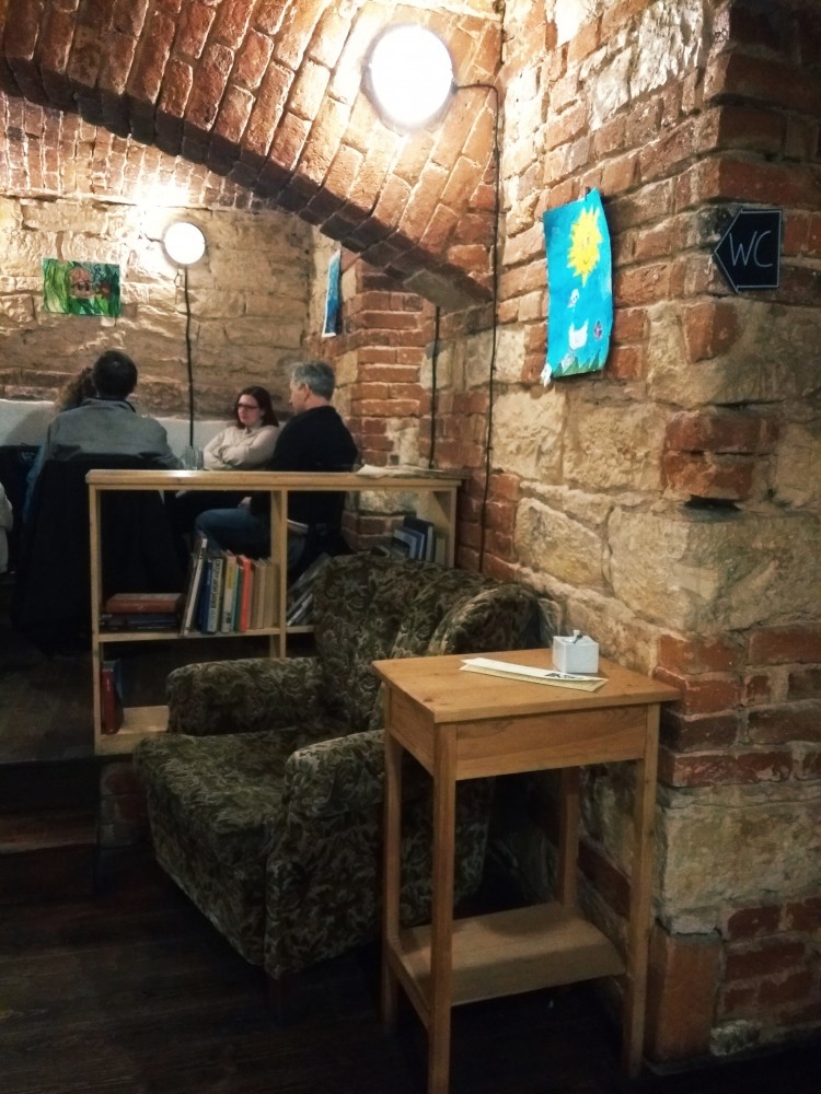 Baristky samozřejmě přikyvují, někdy jsou tu až čtyři. Nejživěji tu podle nich bývá ve všední dny dopoledne, kdy sem lidé opravdu přicházejí na kávu, případně na snídani. Zatímco večerní hosté často vysedávají u piva nebo vína dlouhé hodiny, ti dopolední se rychle obměňují. To už se loučí poslední větší skupinka, česky mluvící cizinci, kteří si rovnou zamlouvají stůl na příští týden. Vypadají trošku jako kroužek češtiny pro cizince. Turisté jako takoví sem ale příliš nechodí. Možná je, stejně jako mě kdysi, odrazuje pohled zvenku.
