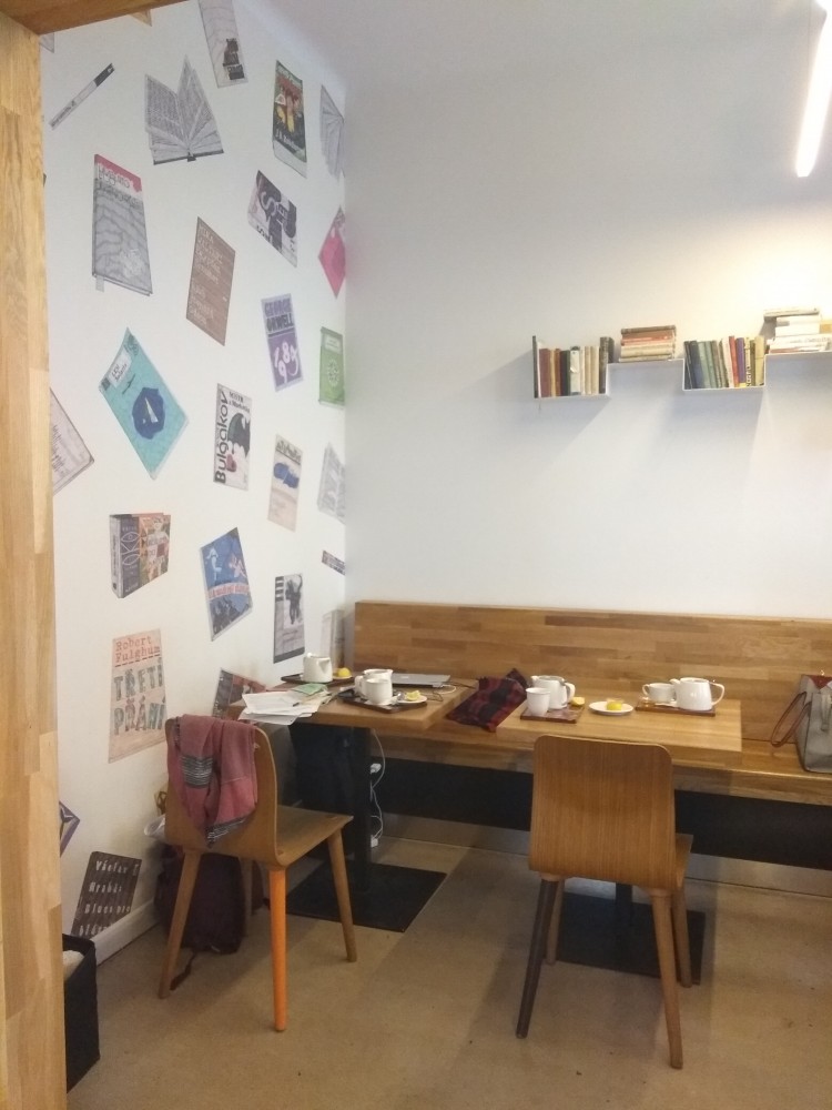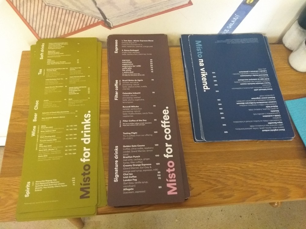 I když nesedím přímo u baru, snadno si všimnu, že na kávu s sebou chodí do Místa spousta lidí. Ve všední dny třeba cestou do práce, mají tu ostatně i lákavá snídaňová menu, teď v sobotu odpoledne také při venčení čtyřnohých mazlíčků. Ti se tu občas trochu poštěkají, ale na podobné scénky jsou Češi jako národ pejskařů zvyklí, hlavu od kávy zvedají jen turisté. V každém případě jsem v jednom okamžiku jsem v kavárně napočítal celkem osm psisek, byť většinou malých plemen.