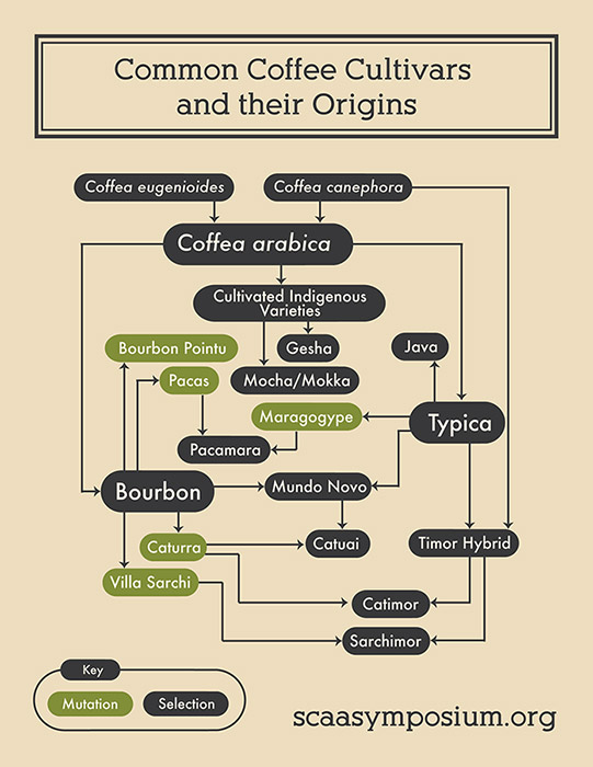 As we have seen, Maragogype is a genetic mutation of the Typica variety of Arabica coffee. This is one part of the parents of a more common variety Pacamara, the other part of course being Pacas, (remember the chart):