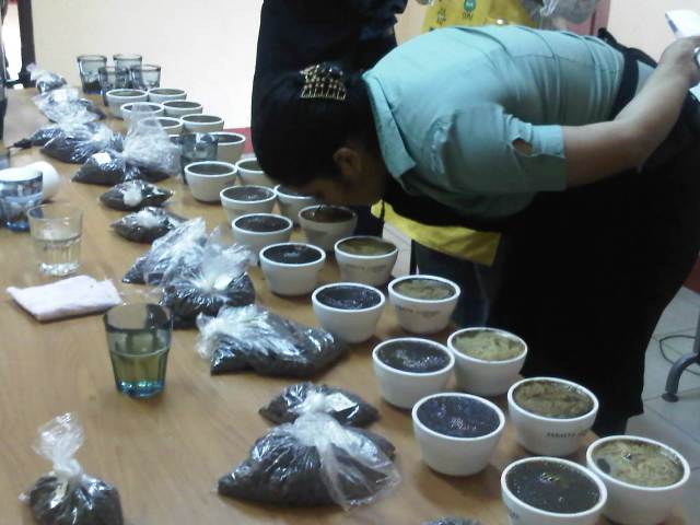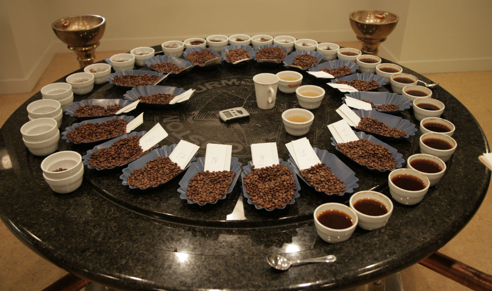 A room with some coffee equipment, coffee cups and beans on a large table, a group of people putting their noses into cups, sniffing, slurping loudly, spitting and taking notes. Little or no conversation, frowning faces, moving spoons … you know you have entered a coffee cupping session! So what is cupping? Cupping is evaluating different characteristics of particular coffee beans, and as tastes change from farm to farm, region to region, country to country and crop to crop, there is a lot to it. But basically cupping is tasting and trying out different coffees.