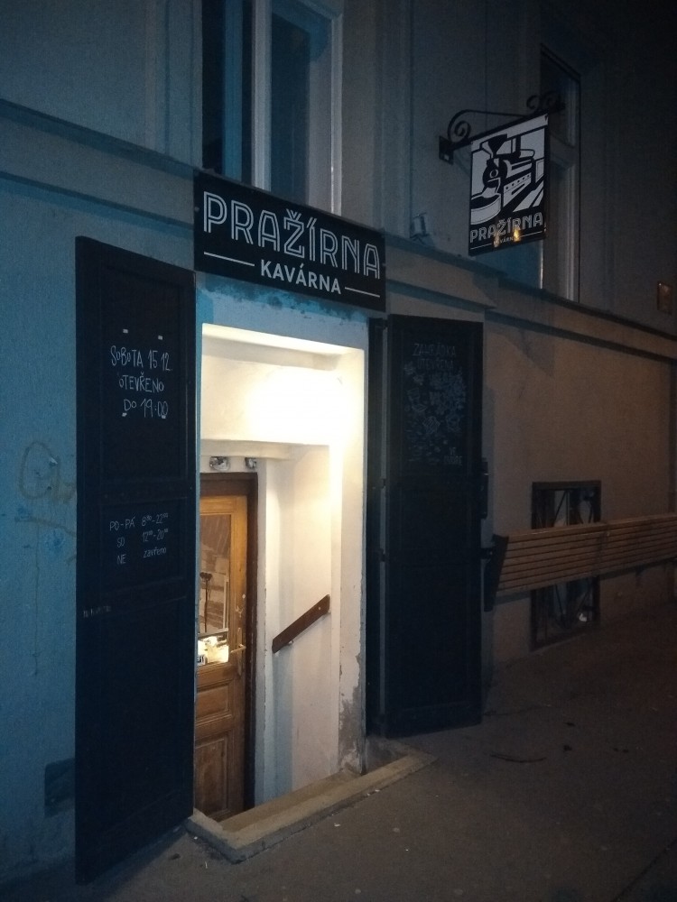 I když je Pražírna docela na ráně, jen několik desítek kroků od důležitého uzlu pražské hromadné dopravy, stanice I. P. Pavlova, dlouho jsem se neodhodlal do ní zajít. Snad právě proto, že je na takhle frekventovaném místě, a že zvenku působí poměrně nenápadně. A její logo navíc první pohled připomíná parní lokomotivu, byť jde samozřejmě o stroj na pražení kávy.