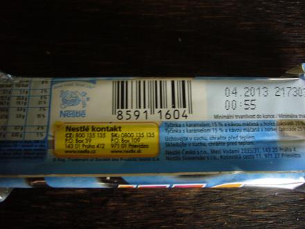Tičinka deli s příchutí café frapé. obsahuje 0,9% instantní kávy Nestle.