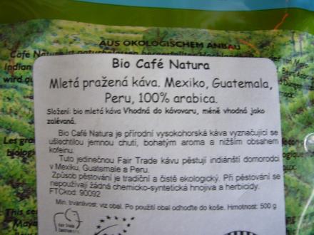 Kava s nižším obsahem kofeinu. Mletá pražená směs káv z Mexika Guatemaly a Peru. 100% arabika.