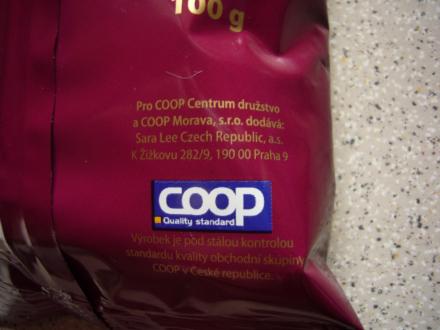 Káva vyráběná pro COOp firmou Sara Lee Czech Republic, a.s..